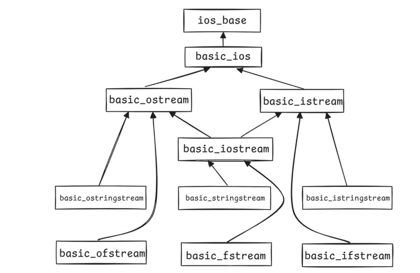 • ios_base:所有 I/O 相关类的基类,提供基本的 I/O 状态管理、格式化控制等功能。
